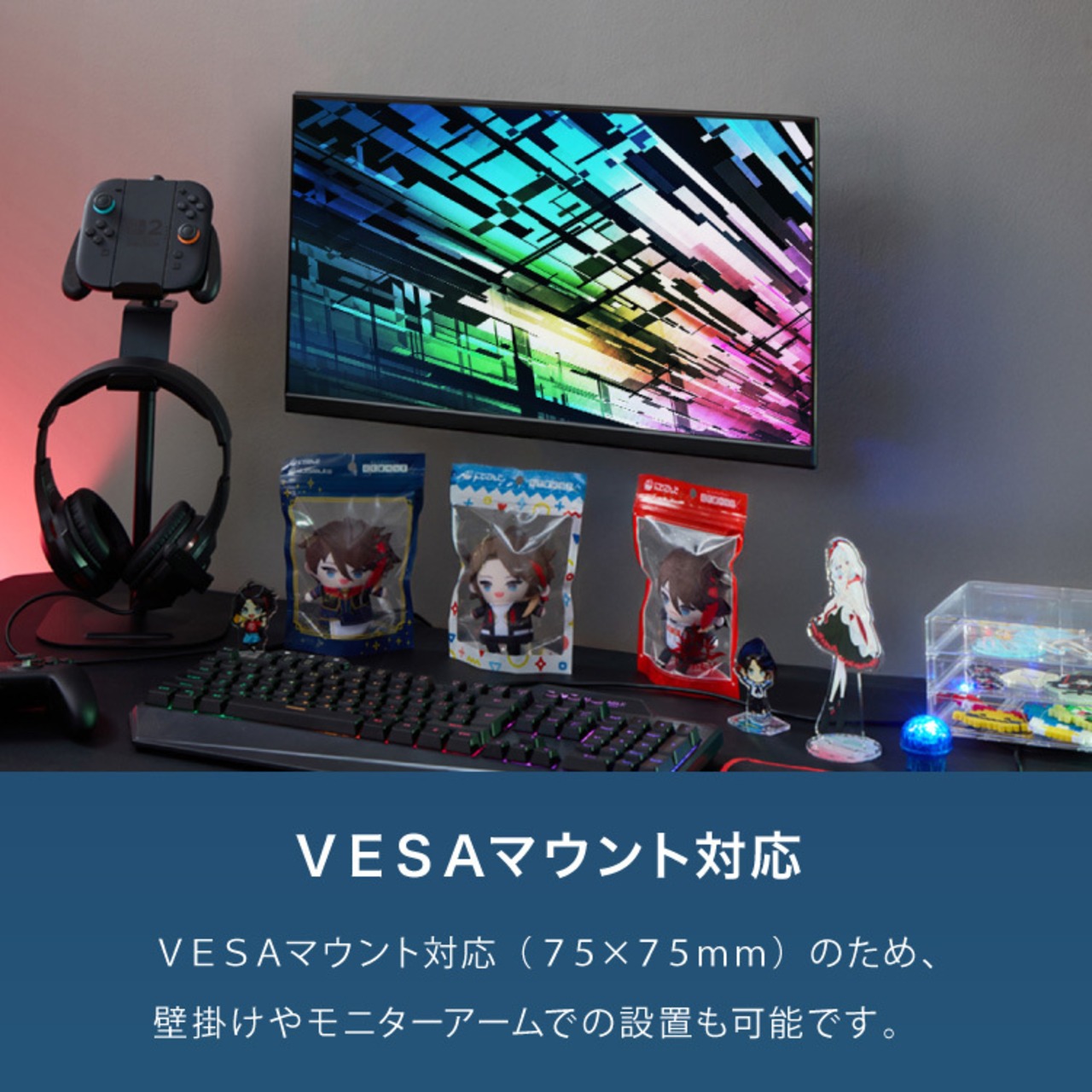 → モニターアームや壁掛けにも対応し、自由な設置が可能。