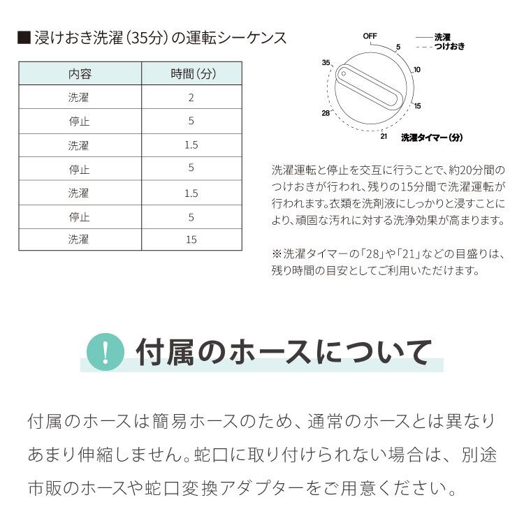 全自動タイプと比べて、水量・時間・モードの自由な調整が可能で、効率的かつ無駄のない運転が実現できます。洗剤がムラなく溶けやすい設計で、粉末洗剤でも残りカスが少なく衣類に優しいです。