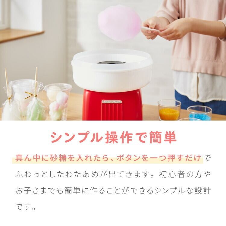 わたあめメーカー、コットンキャンディーメーカー、綿菓子機、わたあめ機、氷砂糖、ザラメ、上白糖、わたがし、お菓子、あめ玉、簡単、親子、料理、クッキング、簡易わたあめ機、パーティイベント、綿飴、綿あめ、子供、家庭用、子供向、たあめ作り、コンパクト、均一加熱、カバー付き、操作簡単