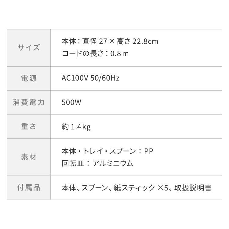 セット内容:本体、スプーン、紙スティック×5、取扱説明書