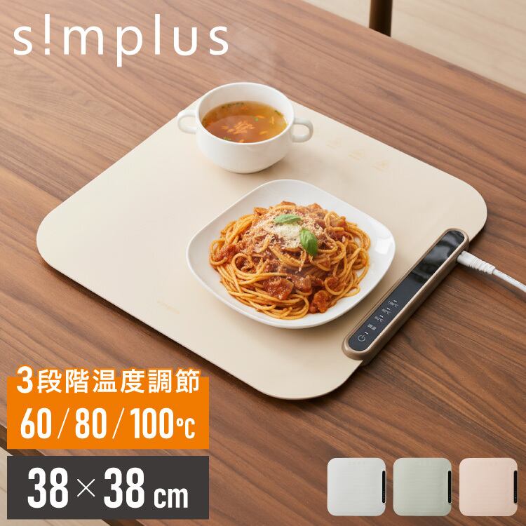 simplus フードウォーマー 保温プレート ホールピザ用 ホットプレート 食事マット シリコン製 防水 10秒急速加熱 60~100℃ 3段階温度調節 折り畳み式 家庭用 操作簡単 お手入れ簡単 シンプラス SP-HWP03 食品保温機